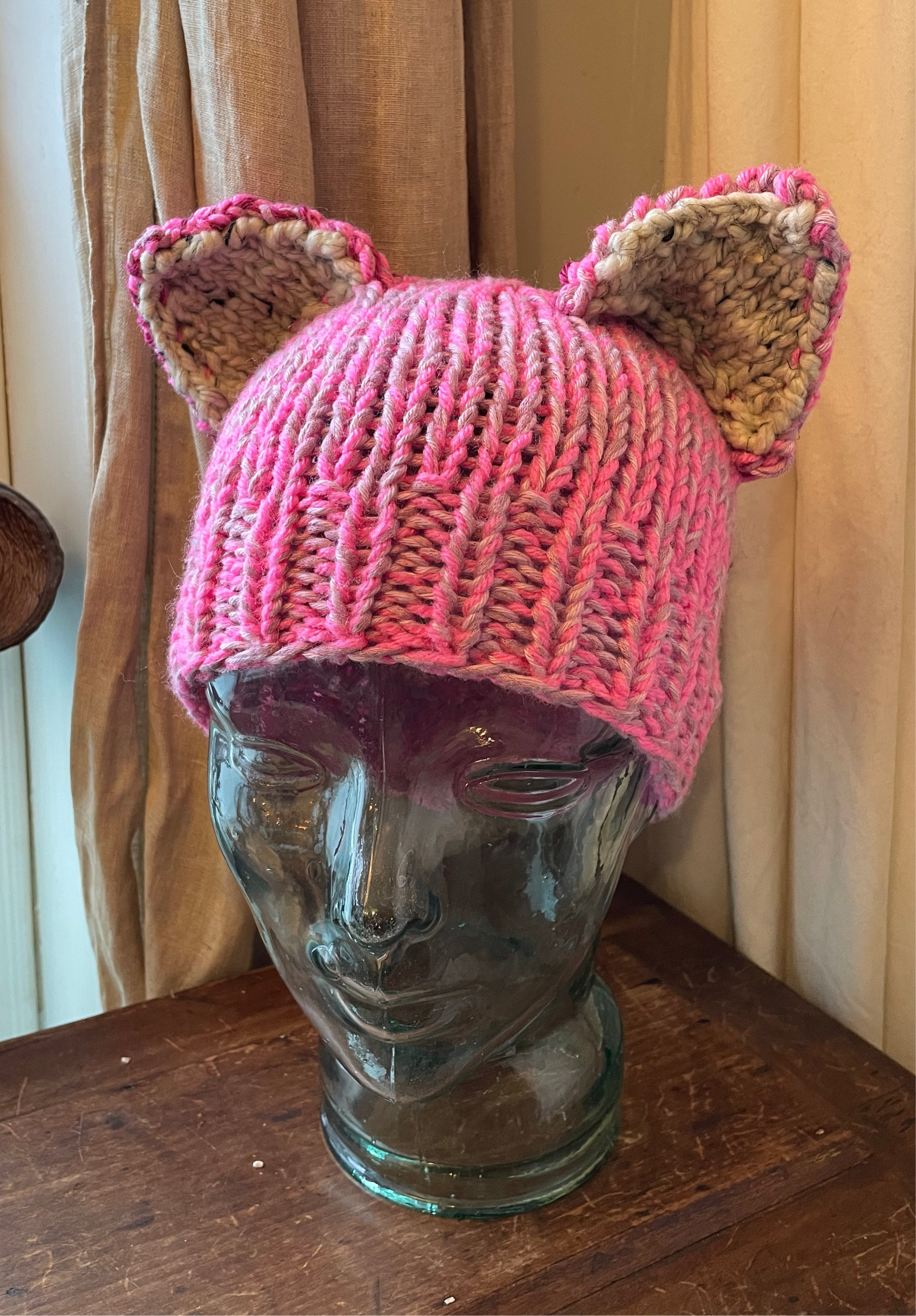 Hand-Knitted Pink Pussy hat with Cat Ears – Small Adult/Teen