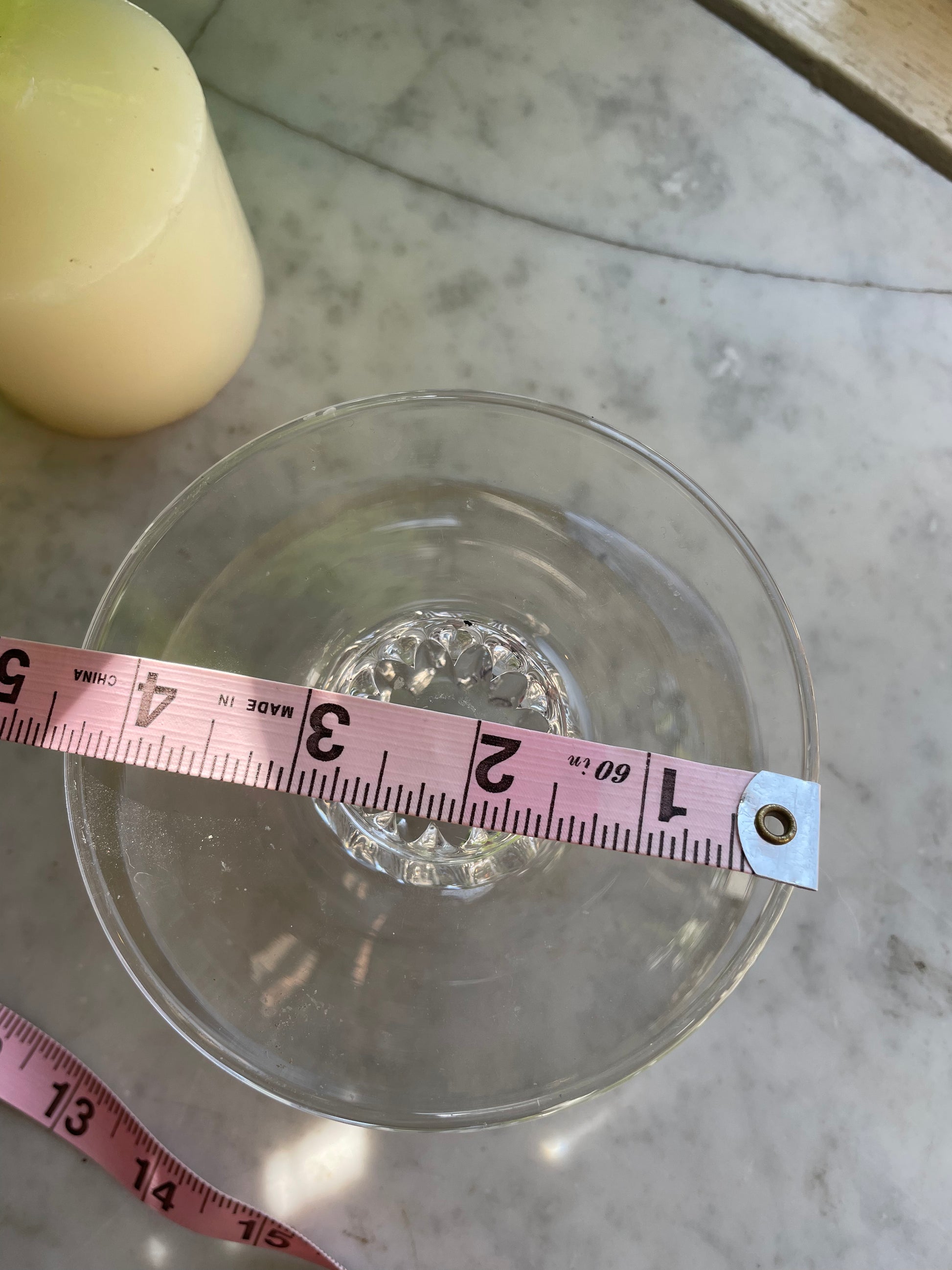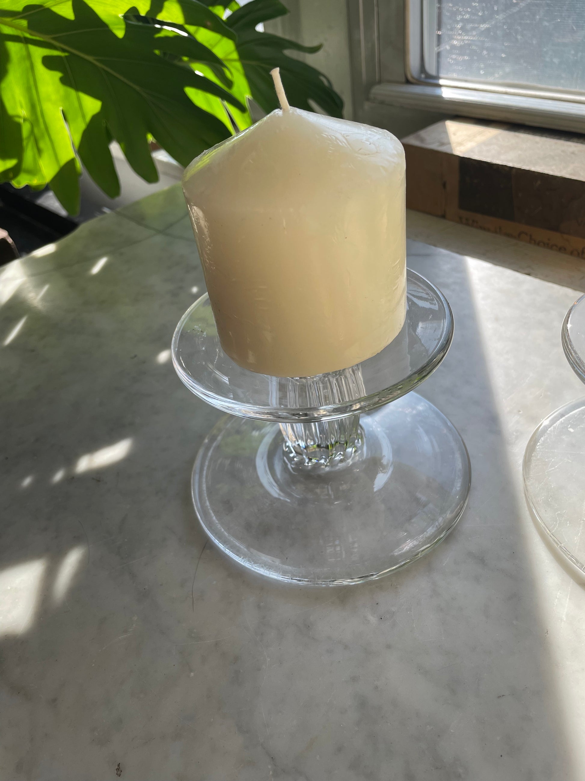 These two hand blown glass clear candle risers are a gorgeous addition to your table scape or holiday altar . Handmade here in Philadelphia, there isn’t another pair like it. About 4” square and flat , they fit most small to medium pillar candles. Please feel free to ask any questions ! :)