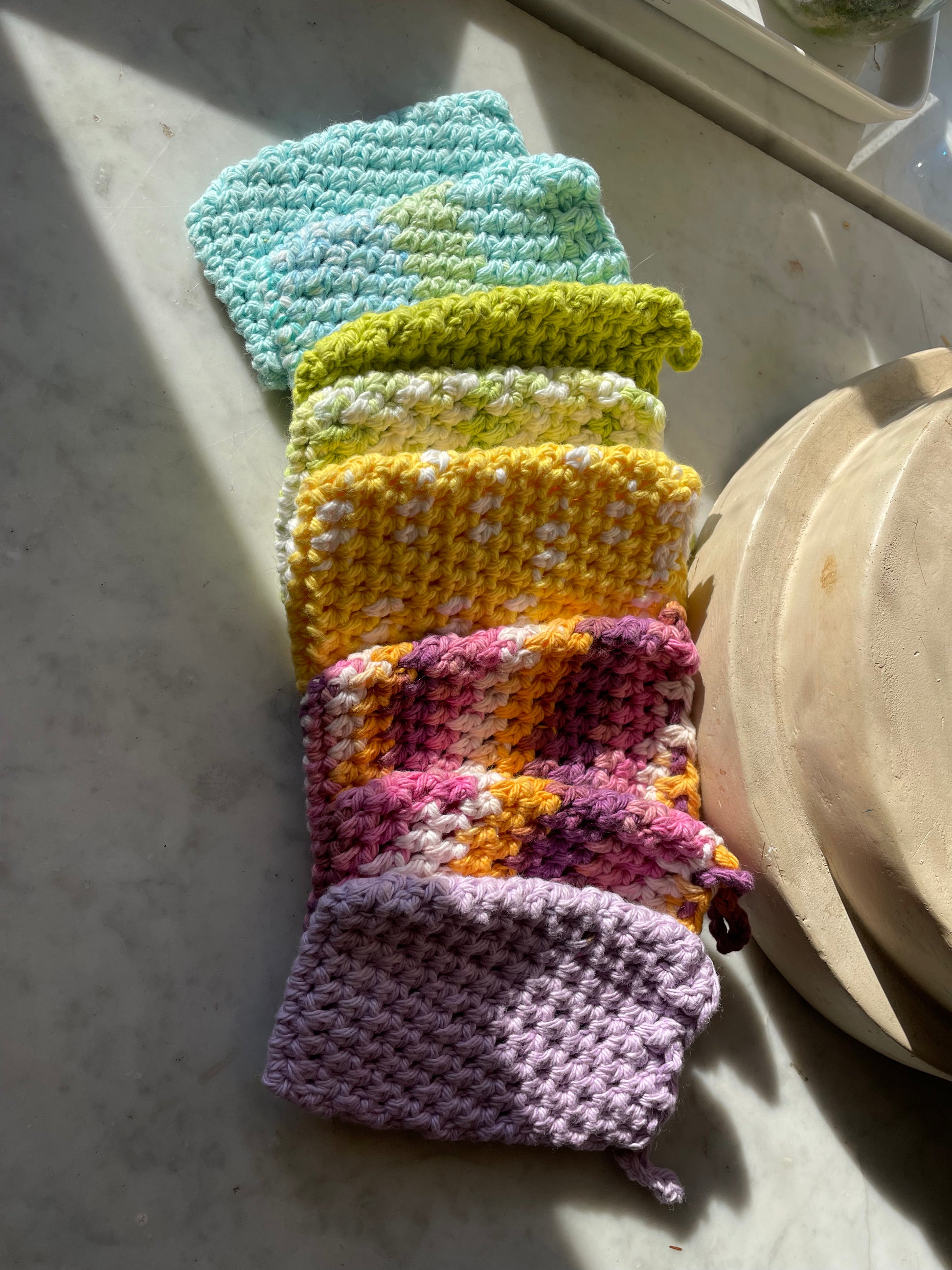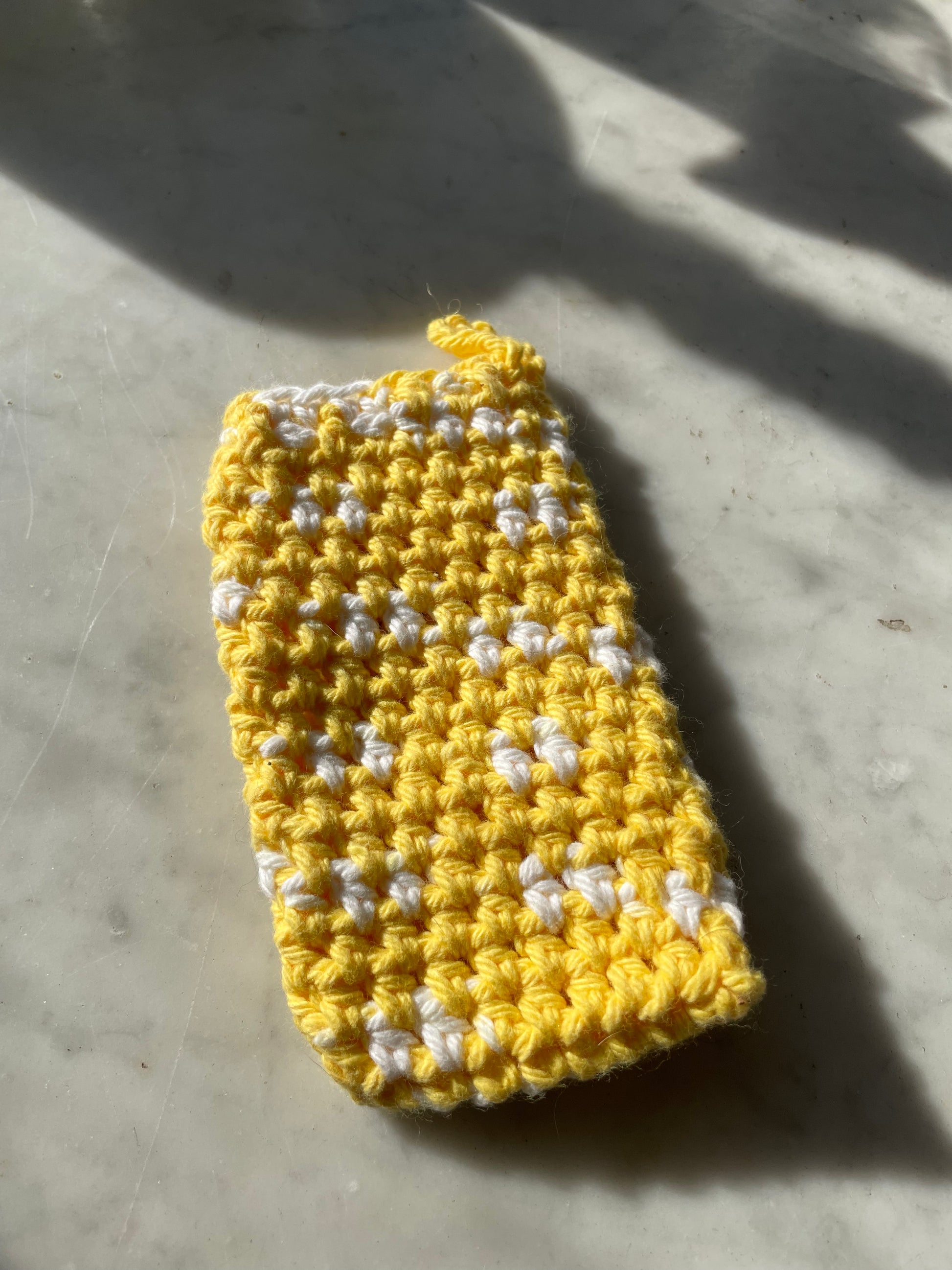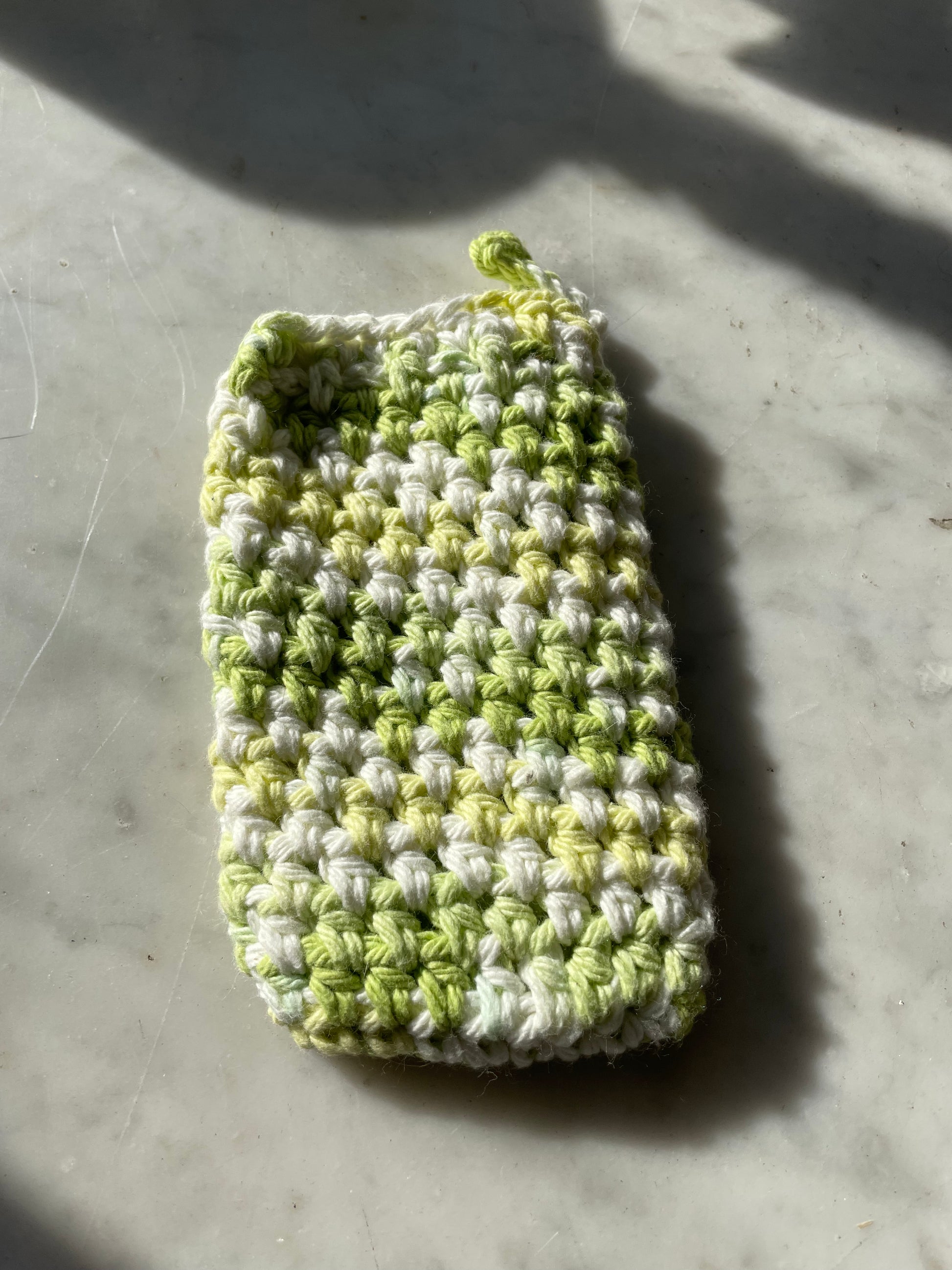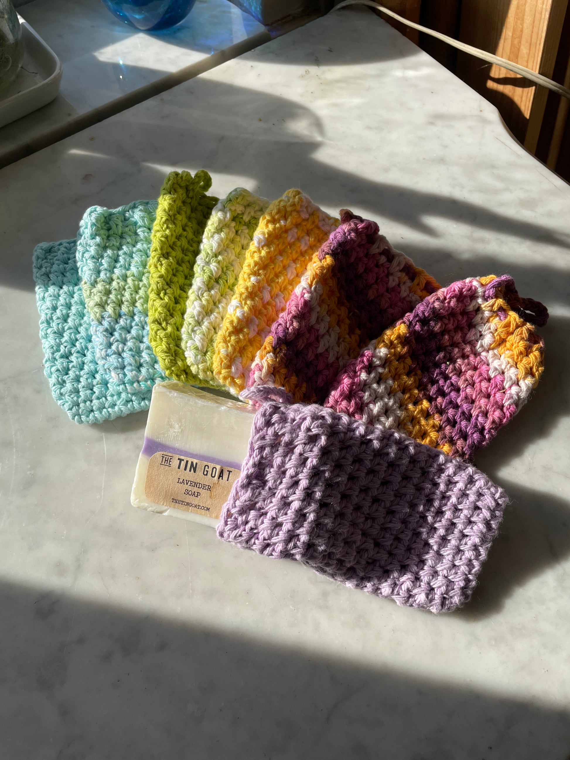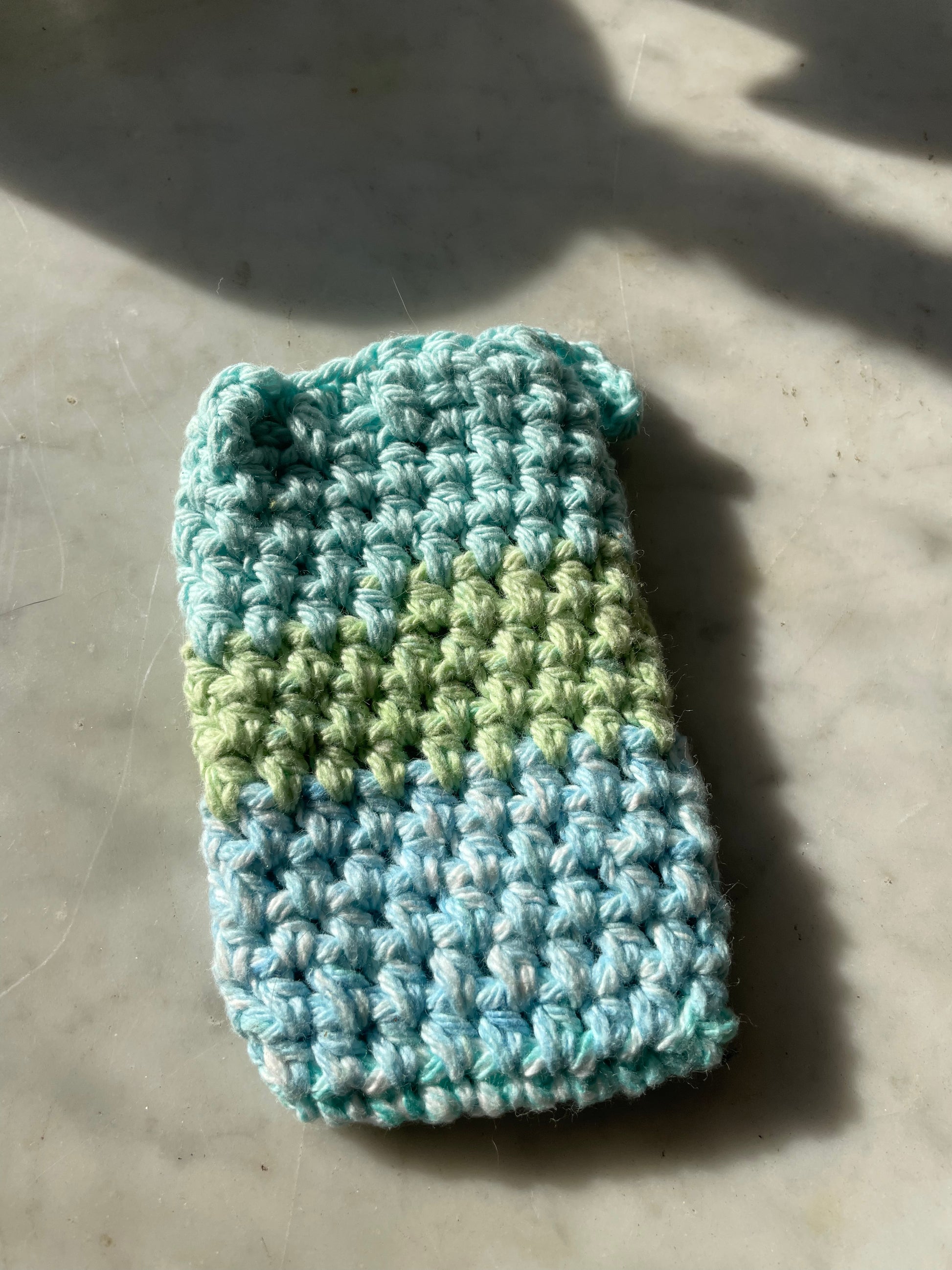 Waste nothing with these soap savers. Each hand crocheted pouch fits a standard bar of soap ( not included) , used to the last sliver. You can also save all your soap ends in one to use them all up! 100% cotton, these cuties are durable and washable . Just slip the soap inside and use the drawstring to close and hang the pouch between showers or baths.